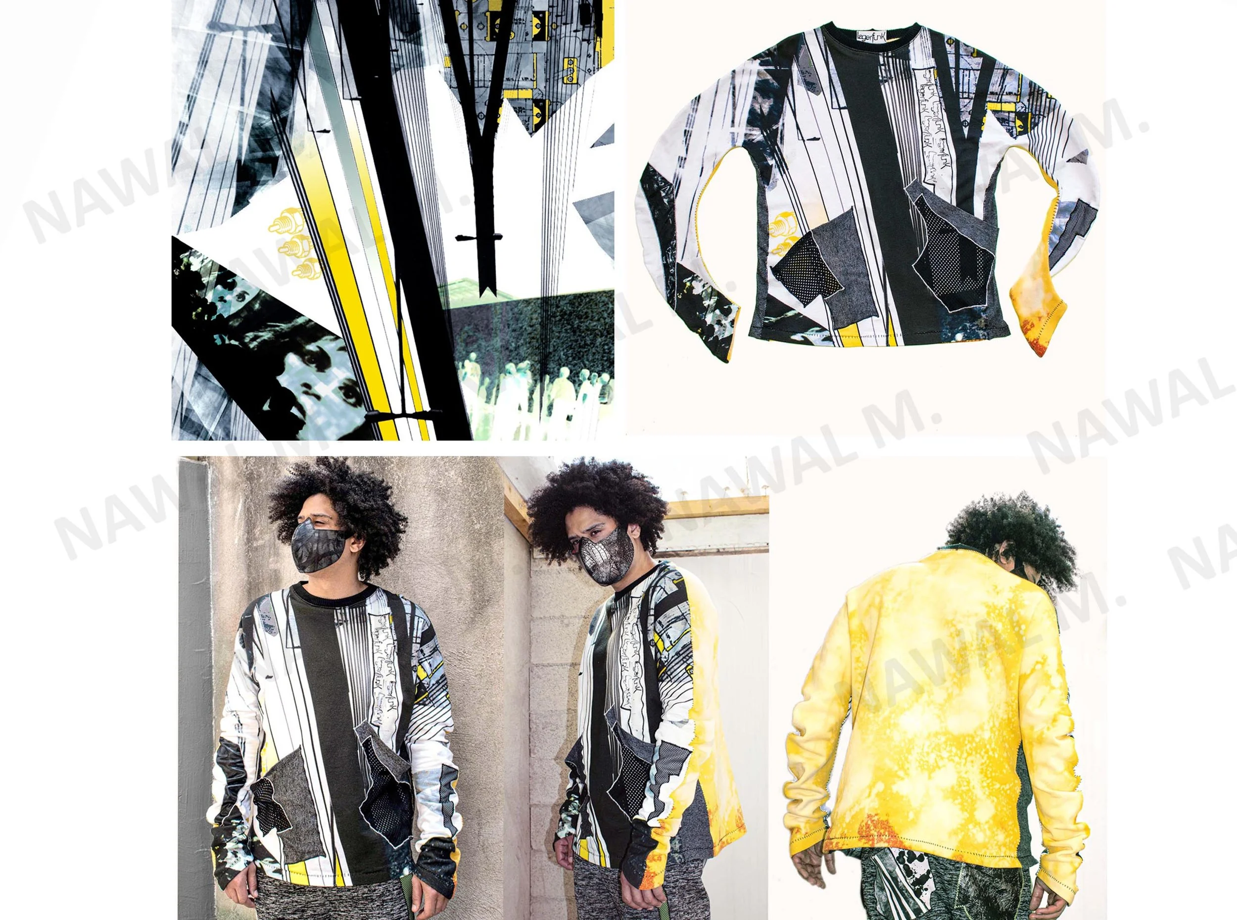 Nawal Mrabet creatrice de mode, styliste, graphiste textile, Paris, custom all over print, repeat print tile , AOP, imprimé textile motif répété, Confection prototype sur mesure